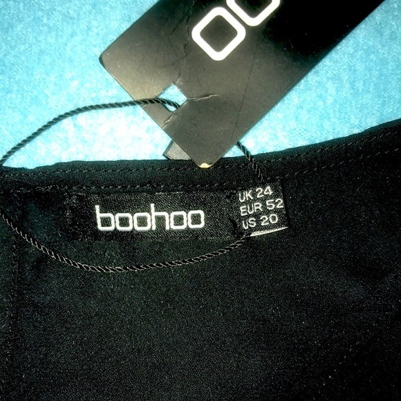 BOOHOO midi sheer ruffle bell long sleeve embellished Swiss dots NWT size 20