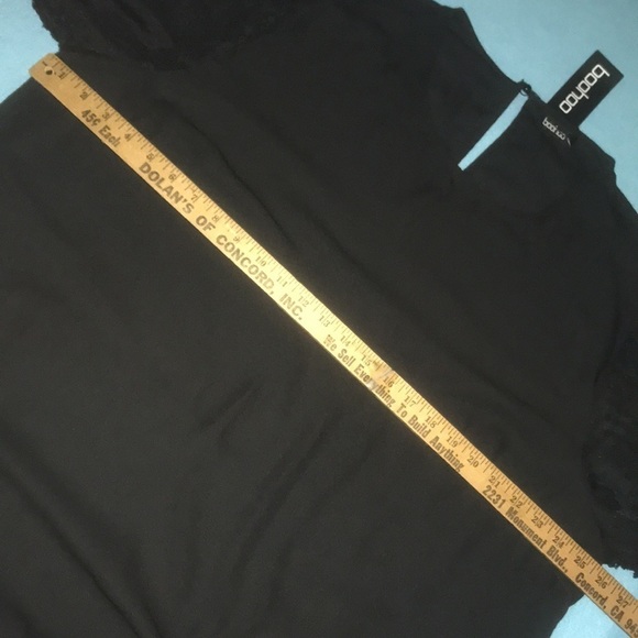 Boohoo midi dress sheer ruffle bell long sleeves with swiss dots embellished texture, back button keyhole. Many ways to wear this one-