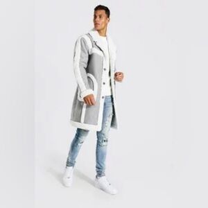 BOOHOOMAN TALL SMART LONGLINE AVIATOR WITH BORG TRIM SZ M