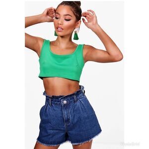 BOOHOO Paperbag Waist Denim Mom Shorts