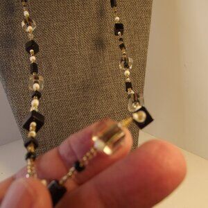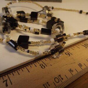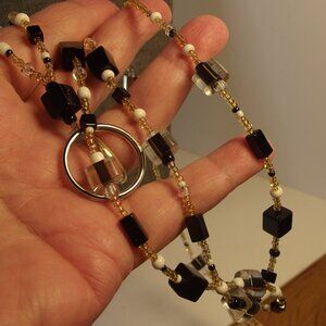 BOOJEE Beaded Lanyard Keyring Necklace Gold Black White & Clear
