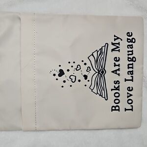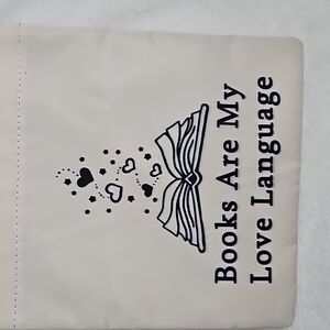 Book sleeve in cream with black wording on fronr"books are my love language ".