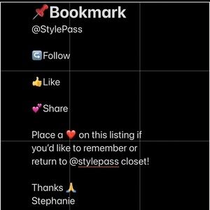 This listing is solely to make it easy for Poshers to to bookmark @stylepass closet in order to come back over and over again to check out new listings or older listings you maybe thinking about purchasing.