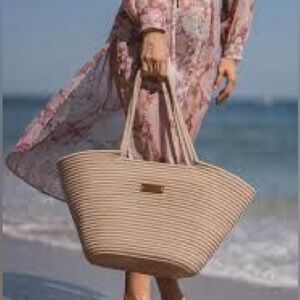 BOOQA Woven Rope Shoulder Tote & Small Handbag Set for Beach Pool Travel NWT