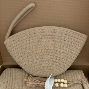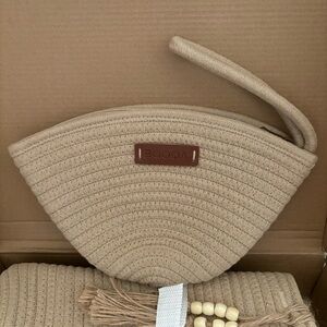 NWT Set of Cotton Rope Woven Tote Shoulder Handbag and Cosmetic Toiletry Organizer for Beach Travel
