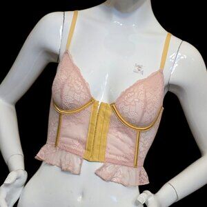 BOOTAY BAG Pink Lace Corset Longline Bra sz XS