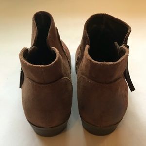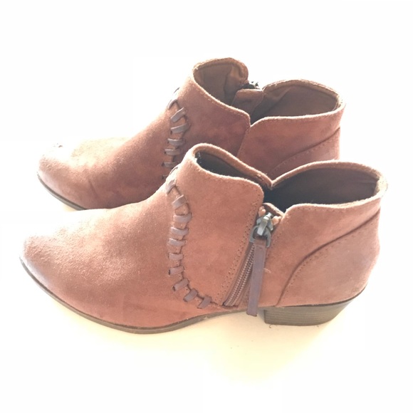 Cute women’s size 8. These boots are a rust color,, there is slight scuff on one of the toes (shown in pics), which price will reflect. Super cute and comfy!