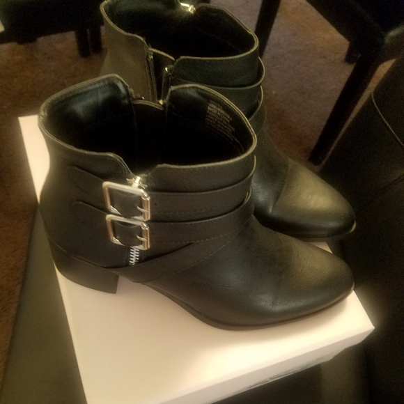 Black booties with silver buckles, wore once, in very good condition still in box.