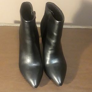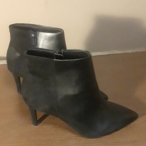 3 in. Booties side zipper the back half is suede. Cute boots that l only worn once