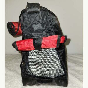 BOOTS AND BARKLEY EXTRA-LARGE BLACK NYLON SMALL PET CARRIER WITH A ZIP CLOSURE, 15X12.5X5 WITH AN ADJUSTABLE 21" STRAP DROP, 1 ZIP AND 1 FLAP COVER OUTSIDE POCKETS, 1 INSIDE ZIP POCKET, 1 ATTACHED INTERIOR CLAW CLASP LANYARD FOR ATTACHING A COLLAR, THE SIDE AND THE FRONT HAVE FLAP COVERS THAT CAN BE ROLLED UP AND VELCROED IN PLACE SO PET CAN SEE THROUGH THE NETTING. GENTLY LOVED AND PROFESSIONALLY REFURBISHED, CLEAN INSIDE AND OUT, LOOKS NEW AND IN EXCELLENT CONDITION.