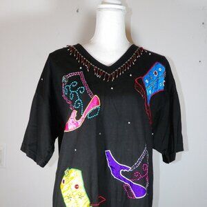 BOOTS Victoria Jones Appliqued Embellished Beaded Tee Shirt Women's Size Large