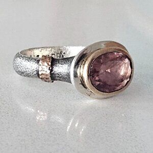 Stunning BORA Pink Tourmaline Oxidized Sterling Bronze 22k Gold Ring Size 6