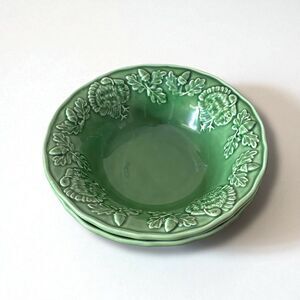 BORDALLO PINHEIRO TURKEY (GREEN) PORTUGUESE MAJOLICA SOUP CEREAL BOWL SET of 2