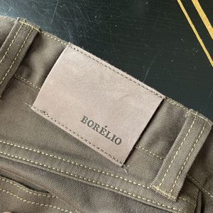 BORELIO Mens Straight Leg Pants Jeans Brown XXL 29 Inseam Size says 64 CM Waistline 42 around Inseam 29.5 Rise 12 Leather patch on backside Has been dry cleaned. Has a small oil spot on pocket and a light area on leg. Button has cracks in finish but works. Please let me know if you have questions