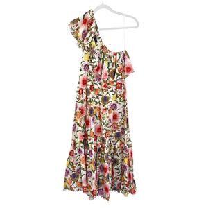 BORGO DE NOR Petra One Shoulder Ruffle Midi Linen Floral Dress Tuckernuck Small