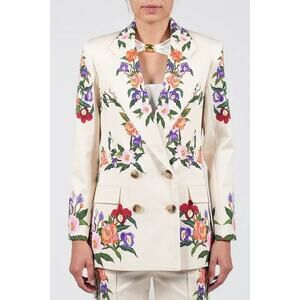 Inspired by great art museums of the world, Carmen Borgonovo and Joana de Noronha use romantic silhouettes and surreal, bespoke prints, to create clothing that not only empower women, but transport them. The Quinn Twill Jacket and Pants in Tree of Life Cream features impeccable tailoring and a breathtaking print placement print that is nothing short of a work of art. The florals seem to have been painted on, giving it an enchanting, magical quality that’s bound to turn heads. Designed for the woman who appreciates beauty with an edge. Wear as a suit or separated and wear as a statement piece It is also listed separately, buy either way