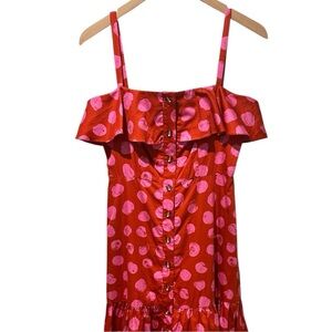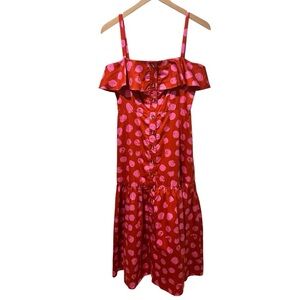 BORGO DE NOR Red Florence Ruffled Polka-dot Cotton Midi Dress sz 6