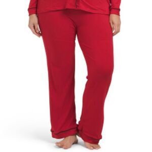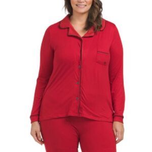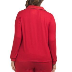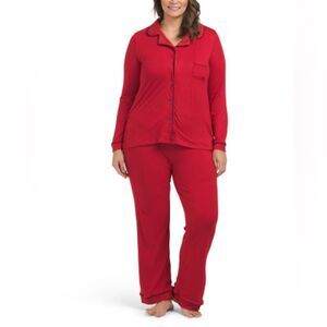 BORN 1X-2XβRed Black Piping Notch Collar Long Sleeve Pants PJ Gift Set