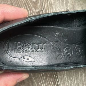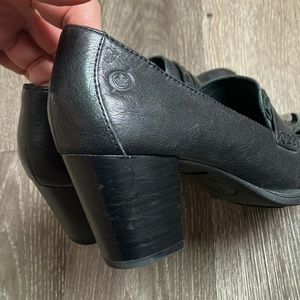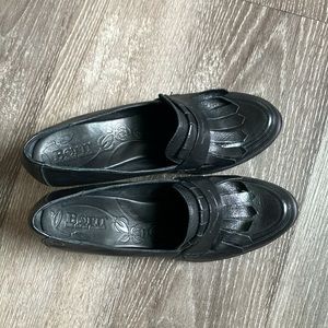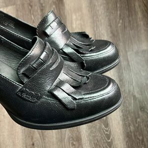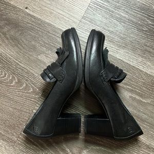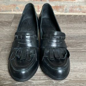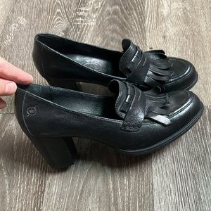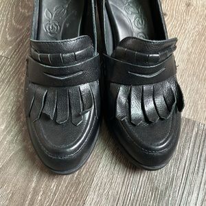 New condition Born Black leather Fringe Chunky Heel Loafers Shoe