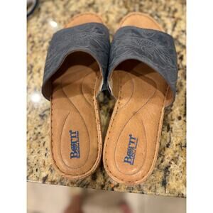 BORN "AS IS" Women's Fishlake Embossed Leather Slide Sandal Blue Size 9