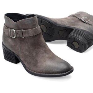 BORN 'Adia' Women's 6.5M Distressed Grey Leather Ankle Bootie Boots w/ Buckles