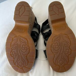 BORN Ankle Strap Sandals Wedge Cork Heels, Black, Size 10,NWT no box