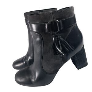 From Born come these amazing two tone ankle boots in black genuine leather and gray genuine suede leather! Featuring an ankle harness with tassels, chunky heel, and inside zipper! 3" heel, 4.5" rise, 10" opening at top, Size 9M! Adorable! Excellent! Superb EUC Condition! ***ABSOLUTELY GUARANTEED CONDITION: EUC MINTY-EXCELLENT TO LIKE NEW, by Lily @HauteClub!*. Offers welcomed!***