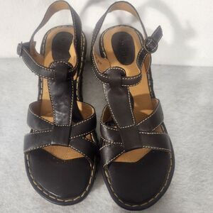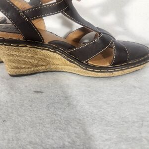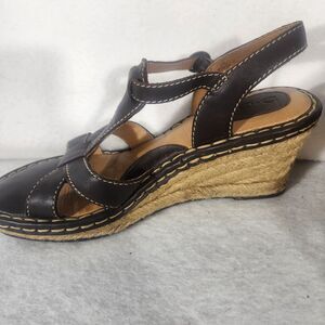 BORN B.O.C. DARK BROWN SOFT LEATHER HIGH ROPE WEDGE SANDAL 9M