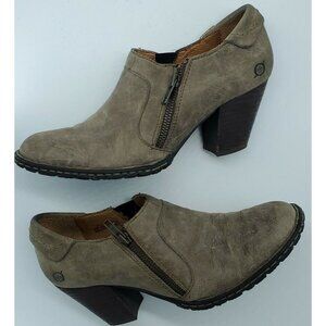 BORN BØRN "Rowan" Taupe Brown Leather Side Zip Booties - Size 8.5 US (W22501) . Condition is Pre-owned.