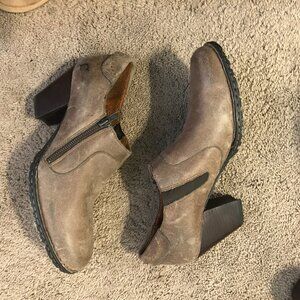 BORN BØRN RowanTaupe Brown distressed Leather Side Zip Booties size 10/42