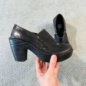 BORN Black Leather Chunky Platform Heeled Round Toe Slip On Clogs Comfort Shoes 7.5
