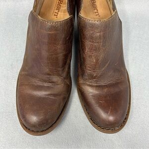 BORN Boots Womens 9.5 M Ankle Booties Brown Leather Block Heels F14206.
