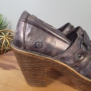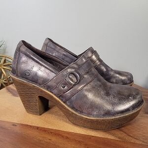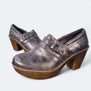 BORN Bronze Leather Distressed Platform Clogs Wood Grain Heels Booties Size 10