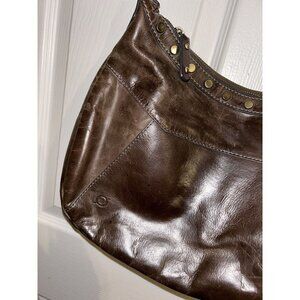 BORN Brown Leather Boho Western Crossbody ShoulderBag Purse With Grommet Detail