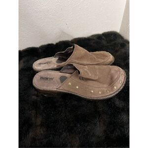 BORN Brown Leather Mules Slides Mocs Womens 9 Metal Stud Detail