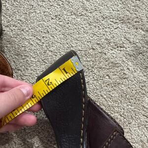 BORN Brown Leather Wedge Heel Sandals in women's Size 7. Adjustable Thong Style w/ one thick upper strap with buckle, open toe. Shoes are in good used condition with minor signs of wear. Please see close-up pictures for condition details and heel measurement.