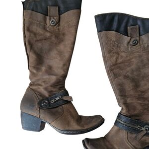 BORN Brown Suede Leather Snub Nosed Mid Calf Boots Size 7.5