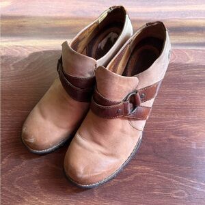 BORN Brown Tan Leather Heeled Ankle Boots Size 8