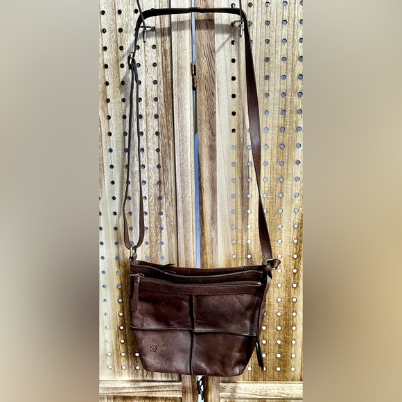 BORN CHOCOLATE BROWN LEATHER,ANTIQUE BRASS,MESSENGER,CROSSBODY BAG-MSRP $148