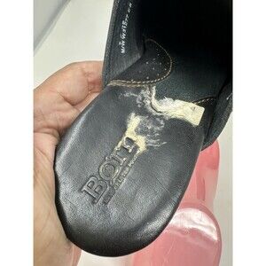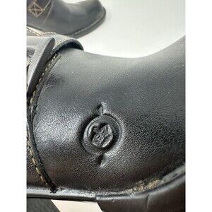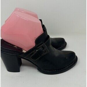 BORN CROWN CLOG BLACK/DUAL LEATHER MULE BLOCK HEEL BUCKLE CONTRAST STITCH 7/38