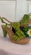 BORN CROWN ~ Green Leather 3.75” Heeled Sandals w/Floral Details Cushion Insole