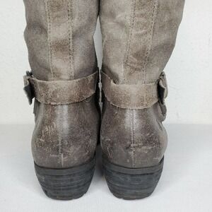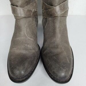 BORN D70722 Odom Brown Distressed Leather Side Zip Buckles Boots Womens Sz 7.5 M
