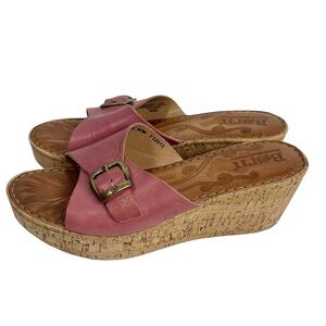 BORN Dusty Rose 8/39 One buckle one strap cork wedge boho sandal