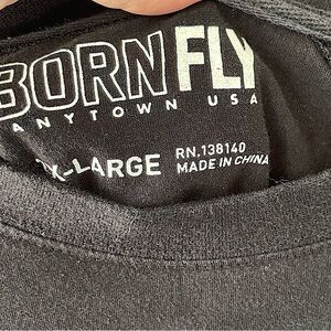 BORN Fly Black Long Sleeve T Shirt with EmbossedGraphic and Textured Sleeves XL