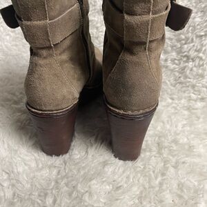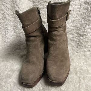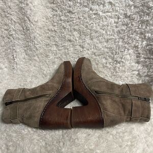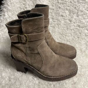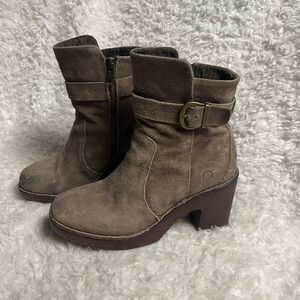 BORN Hailey leather suede distressed brown platform ankle Boots side zipperSZ7.5 side buckle accent. Pre owned in good used signs of wear on the suede. See all pictures any questions please message. A10
