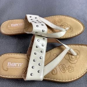 BORN KRYSTEN OFF WHITE LEATHER SANDALS WOMENS 8 CREAMY WHITE