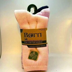 BORN LADIES CREW SOCKS 5 PK ECO FRIENDLY PINK LAVENDER CRÈME NAVY GREY SZ4/10NWT