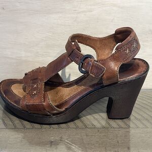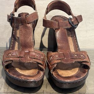 BORN Leather Sandals Heels Strappy Platform BOHO Brown Womens Size 7 buckle leat
