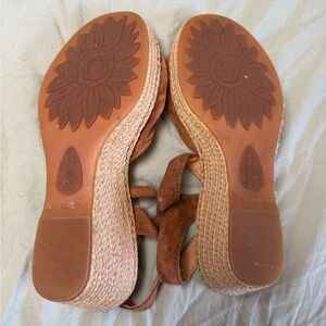 BORN- “MONTICELLO” knotted wedge leather upper sandal. Color: Brown Size: 7