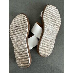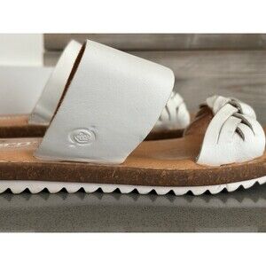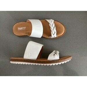 BORN MORENA WHITE LEATHER SLIDES SANDALS SZ 7M BRAIDED SLIP ON CASUAL RETAIL $99